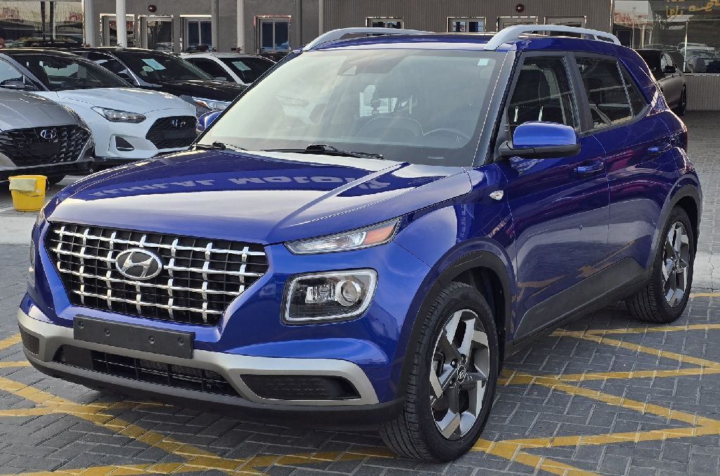 Hyundai Venue 2022 model with 146,000 miles. Features include keyless entry, push start, cruise control, lane keeping assist, and blind spot monitoring. Price: 35,000 AED.