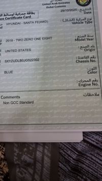 Hyundai Santa Fe 2018, American import, accident-free, 5 seats, 4-cylinder, excellent condition, mileage 133,000 miles, located in Ajman, price 29,000 AED. Contact via WhatsApp or phone call.