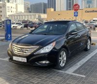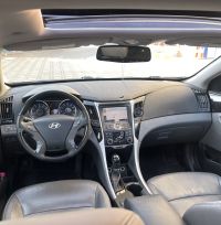 Hyundai Sonata 2012 Limited Full Option #1 Panorama, Royal Black exterior with Silver interior, 4-cylinder, only 100,000 km, in showroom condition, Mashallah. Features: Panorama sunroof, smart key entry and fingerprint start, genuine leather, folding mirrors, LED lights, large screen, camera, alloy wheels, fog lights, steering wheel controls, cruise control, mirror turn signals, seat memory, electric seat, digital air conditioning, rear air conditioning, electric mirrors.