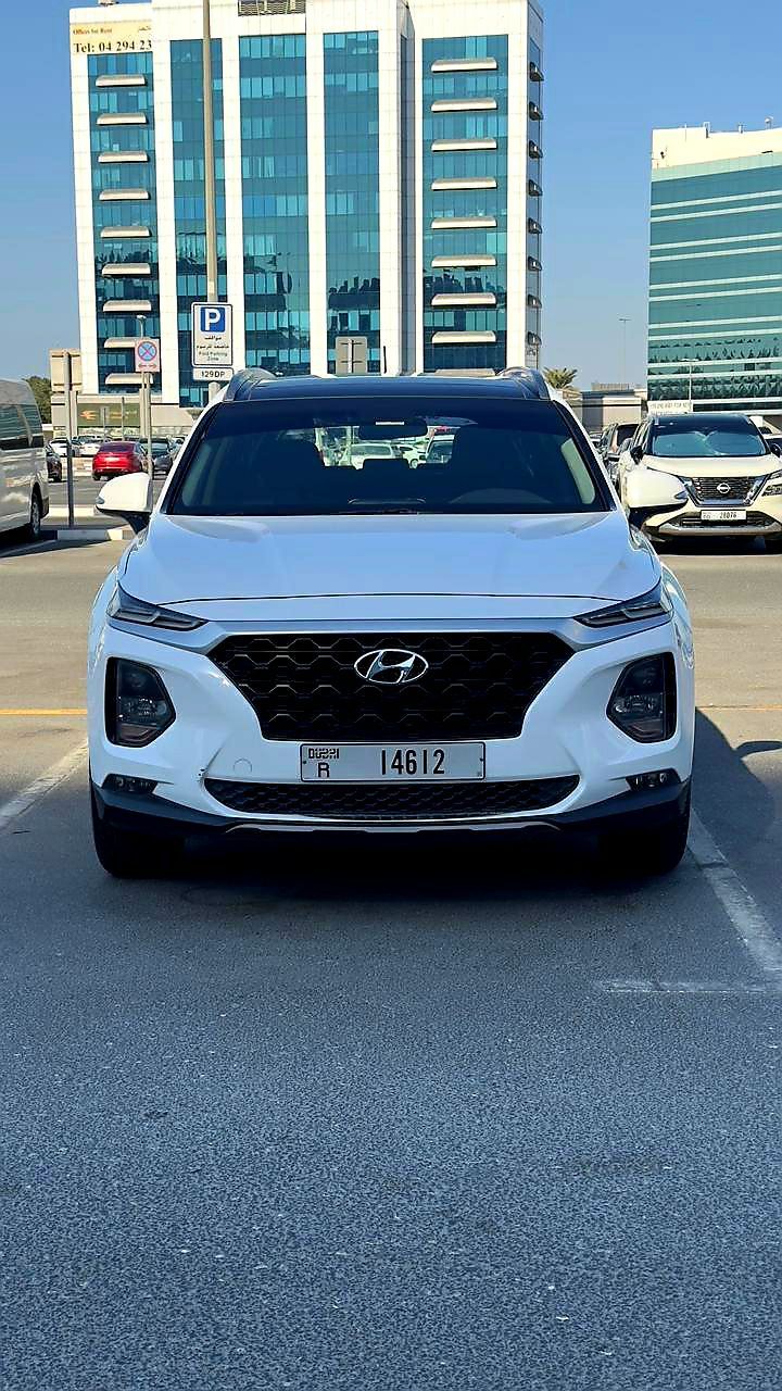 Hyundai Santa Fe 2019, GCC specs, first owner, full options, accident-free. Contact: 0509608004. Specifications: Hyundai Santa Fe / Model 2019 / GCC specs / Full options / Accident-free / 152,000 km / Panoramic sunroof / Electric seats / 7 seats / Android screen / Fingerprint start / Electric mirrors / 4WD / Cameras / Sensors / Keyless entry with fingerprint / Remote start / Bluetooth / 2024 tires / Contact owner directly.