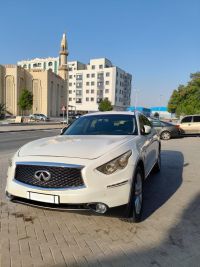 سيارة إنفينيتي QX70 موديل 2015 للبيع، لون أبيض، دفع رباعي مع حساسات وكاميرات، محرك 3700 سي سي، موجودة في النعيمية، عجمان.