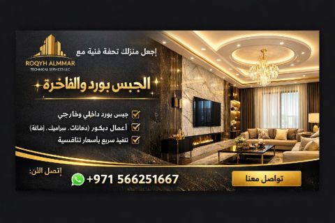 اعلان تشطيبات وديكور - جبسون بورد & اسمنت بورد عايز تغير شكل بيتك أو مكتبك معنا هتلاقي أفضل شغل جبسون بورد - اسمنت بورد - ديكورات حديثة بجودة عالية وأسعار مناسبة للجميع خدماتنا تصميم وتنفيذ جبسون بورد بجميع الاشكال أسقف معلقة - جدران ديكورية تقسيمات اسمنت بورد مقاومة للماء والحرارة تنفيذ ديكورات مودرن وكلاسيك تصاميم 3D حسب طلبك خبرة خمس سنوات في الدولة ولدي أعمال في البنوك الاماراتية والمستشفيات