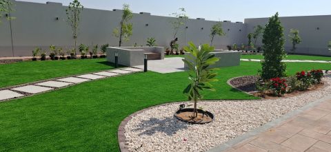 تنسيق الحديقة الخاصة لمنزل وزراعة الأشجار وشجرات الزينة وعمل شبكة الري الحديثة وتركيب الباسكو واضأه لحديقة وعقود صيانة شهريه للتواصل