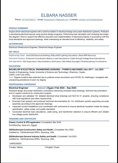Electrical engineer based in Dubai, actively looking for new opportunities. I have hands - on experience in LV power distribution, electrical design, and site supervision and I work with Revit MEP to develop electrical layouts and systems as part of the design workflow. If you’ re hiring or know someone who is, I d love to connect