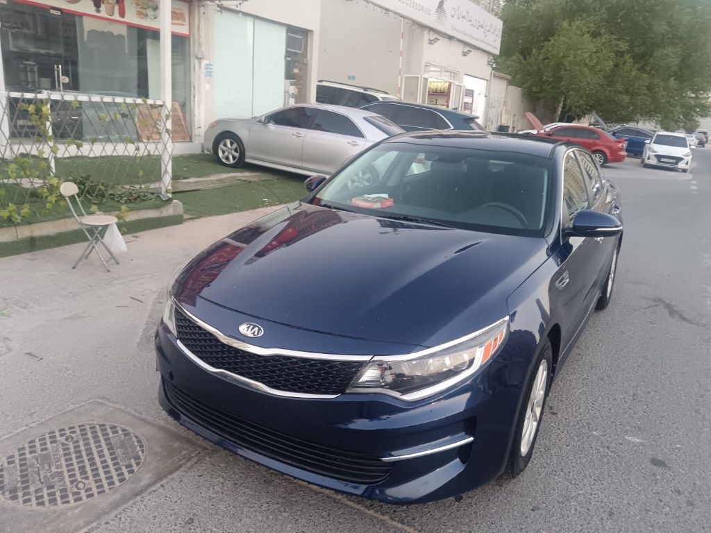 Kia Optima with customs papers, model 2018, mileage 124,000 km. Features include screen, camera, cruise control, steering wheel controls, front and rear sensors, original rims. Agency specifications except for the front bumper. In excellent condition with seat cooling and heating. Located in Ajman Al Rashidiya.