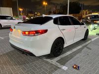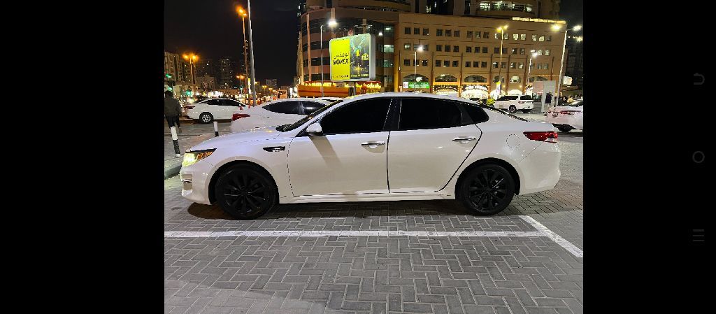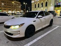 Kia Optima LX 2018 model, American specifications, in excellent condition inside and out, accident-free, white exterior with beige interior, mileage 176,617 km, 2.4L engine, front xenon headlights, touchscreen, insurance valid until December 2026