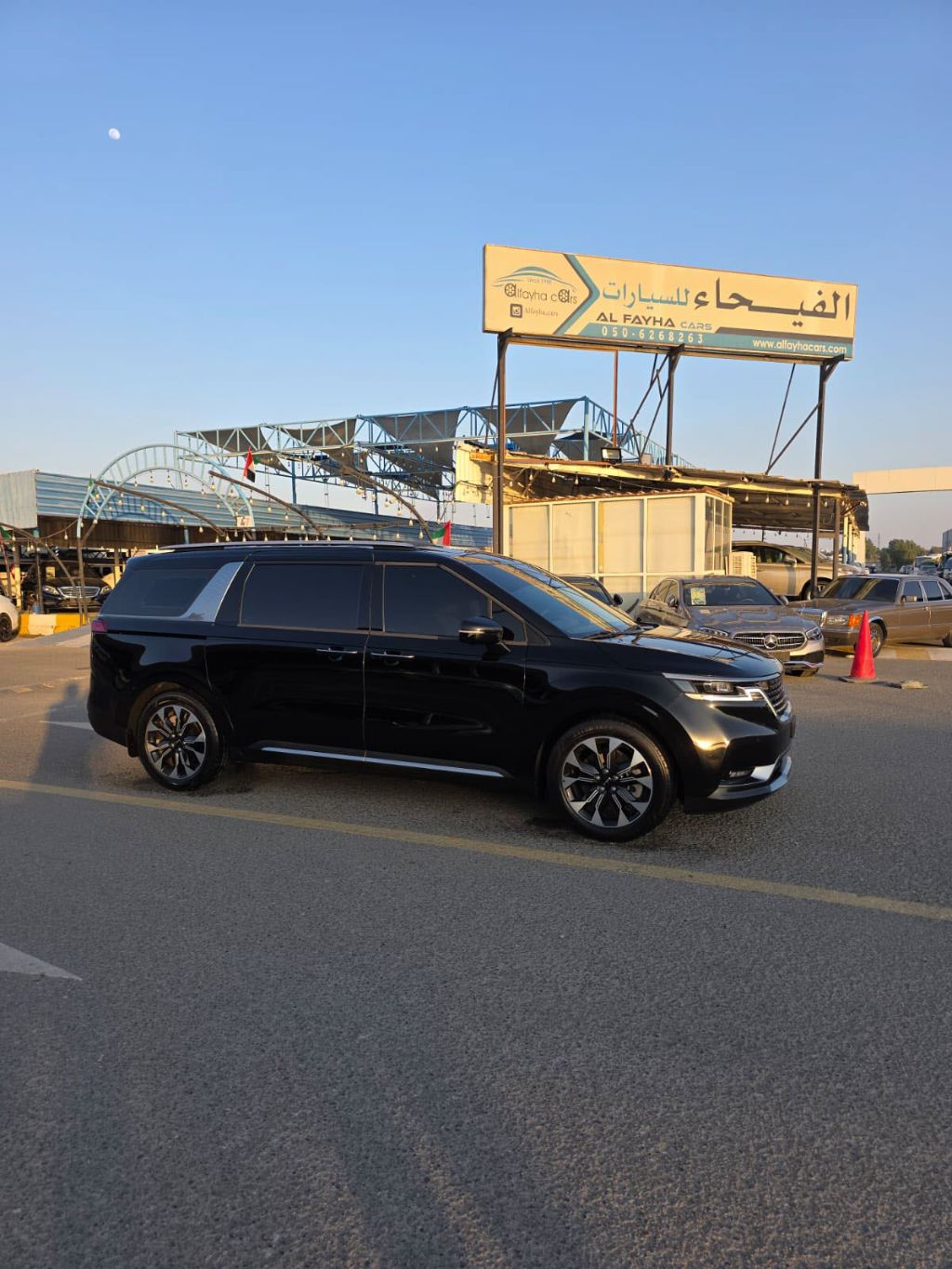 Kia Carnival Grand 6-cylinder 3.5L full options model 2023. Price: 125,000. Odometer: 41,000 km. Specifications: GCC specs, black exterior / saffron interior. Agency tint, accident-free. First owner from the agency. Agency checks. Car specifications: full options number 1. Saffron leather with lighting, radar interactive. Lane departure warning, blind spot detection. CarPlay, dual front and rear air conditioning. Cooling and heating seats. The car is full options and has protective film.