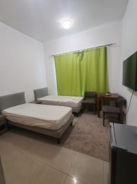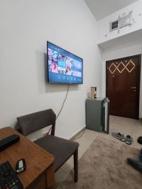 غرفة عاديه مع شاشة تلفزيون وثلاجة بكورنيش عجمان النخيل 2 صف أول من الكورنيش لشابين بسكن شباب فقط السعر 2000 درهم