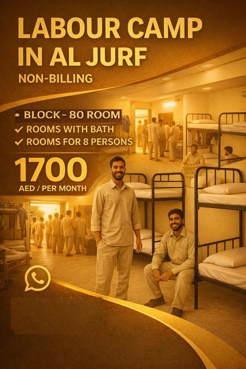 Labour Camp for rent - Al Jerf Industrial Area Well - maintained and fully equipped labour camp, ideal for companies and contractors, located in Al Jerf Industrial Area. Features Block 80 room Rooms with private bathroom Rooms for 8 persons Non - Billing system Clean, safe, and organized accommodation Price AED1700 Contact us