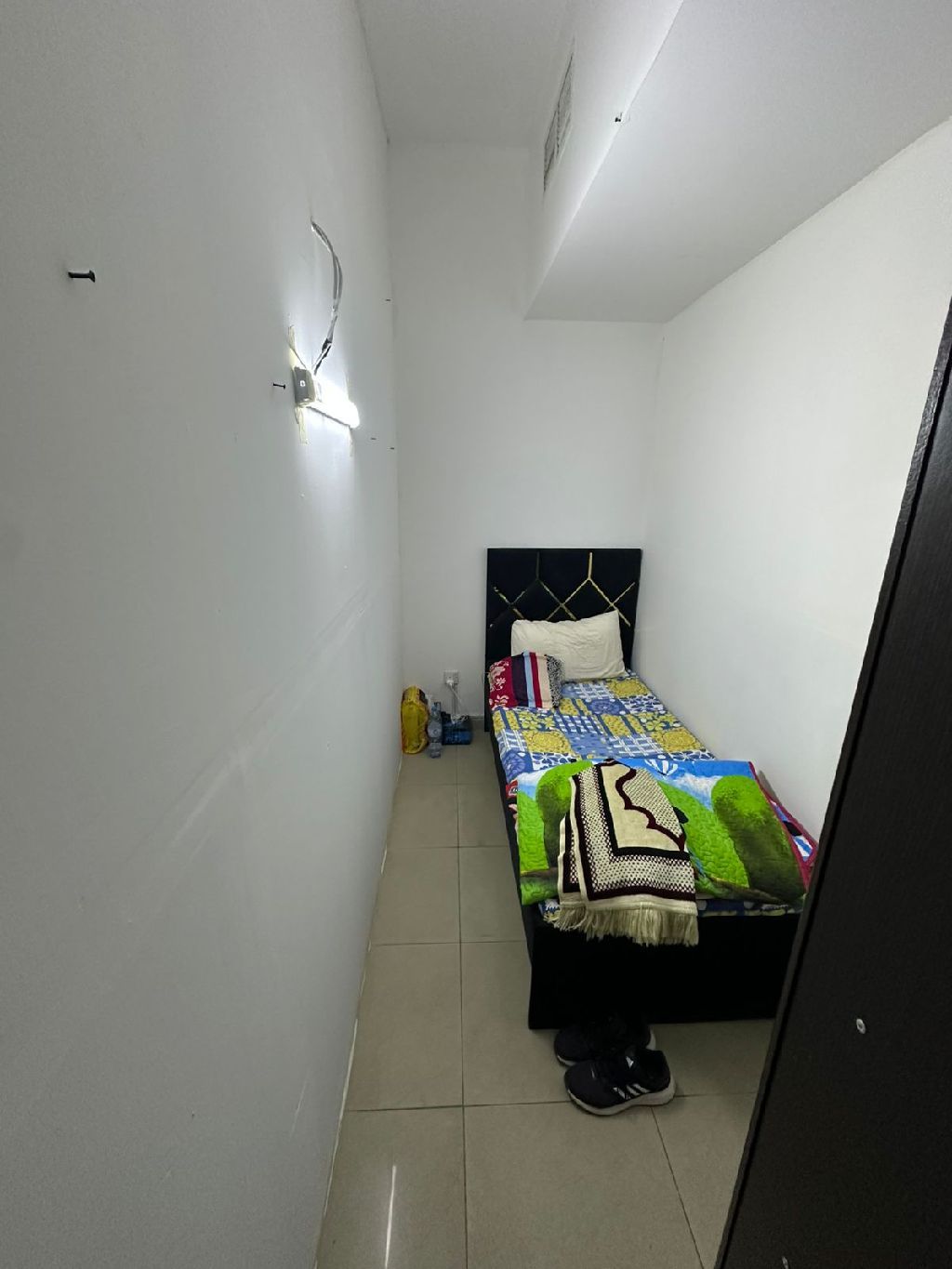Partition is available in a shared apartment for males or females. Location Rashidiya 3, opposite Grand Mall and Mashreq Bank. Price AED900, inclusive of everything