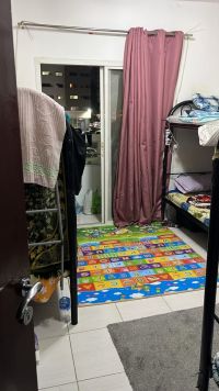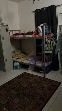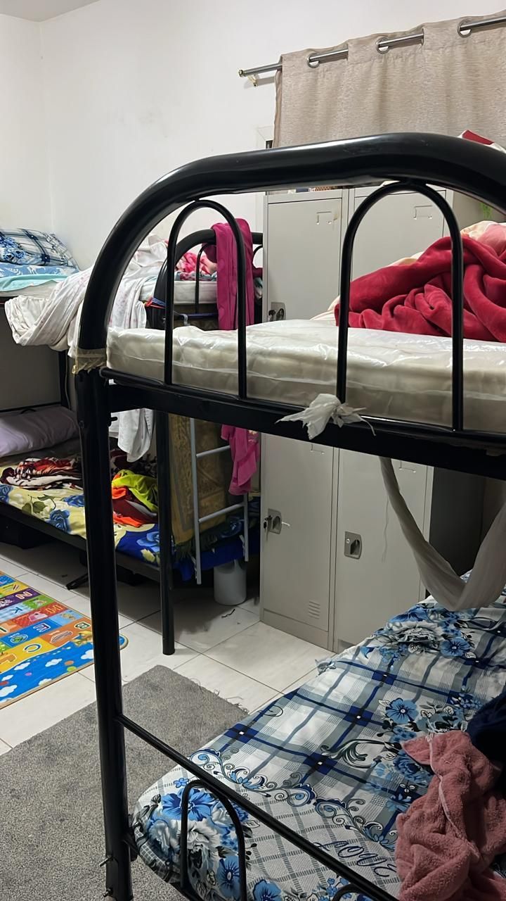 Three double beds are available for males at 400/ AED350, next to Karmana Al Arabi Market and near Al Jundi Restaurant in Rashidiya 3