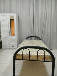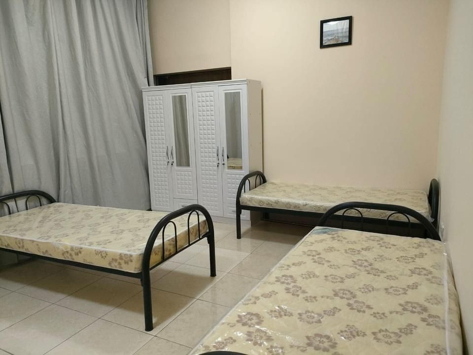 Available 3 single beds for male tenants at 500 in a master room in a men’ apartment in Rashidiya 3, next to Al Jundi and Istanbul restaurants and close to the bus stop