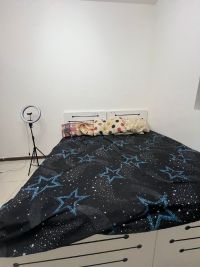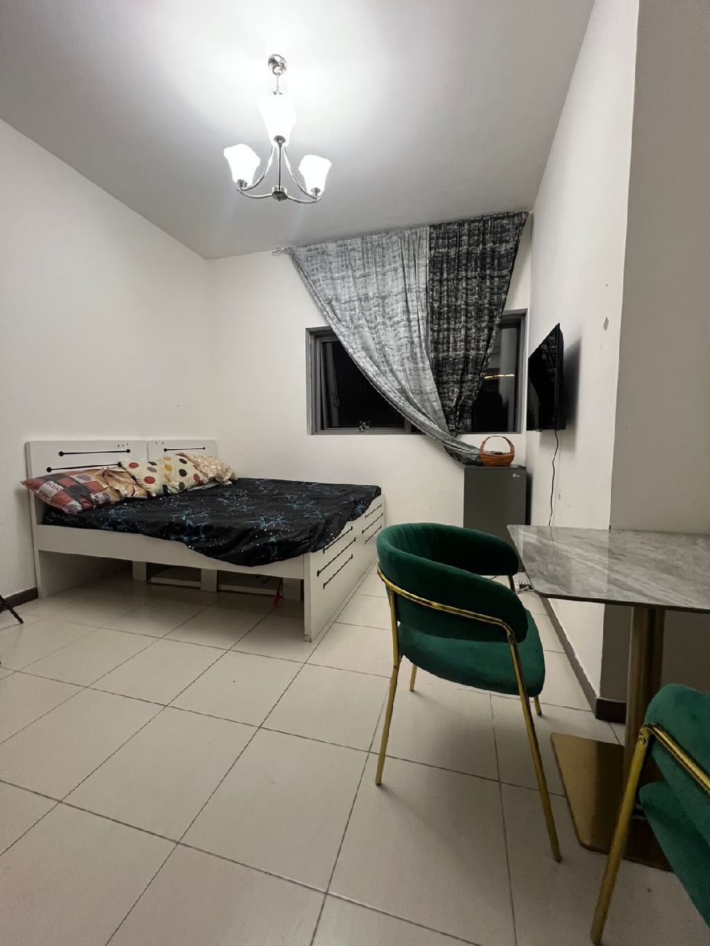 Translation A family room is available, suitable for a couple, two girls, or two men, in a respectable and quiet family accommodation. A clean staff apartment located in Rashidiya 3, near Grand Mall