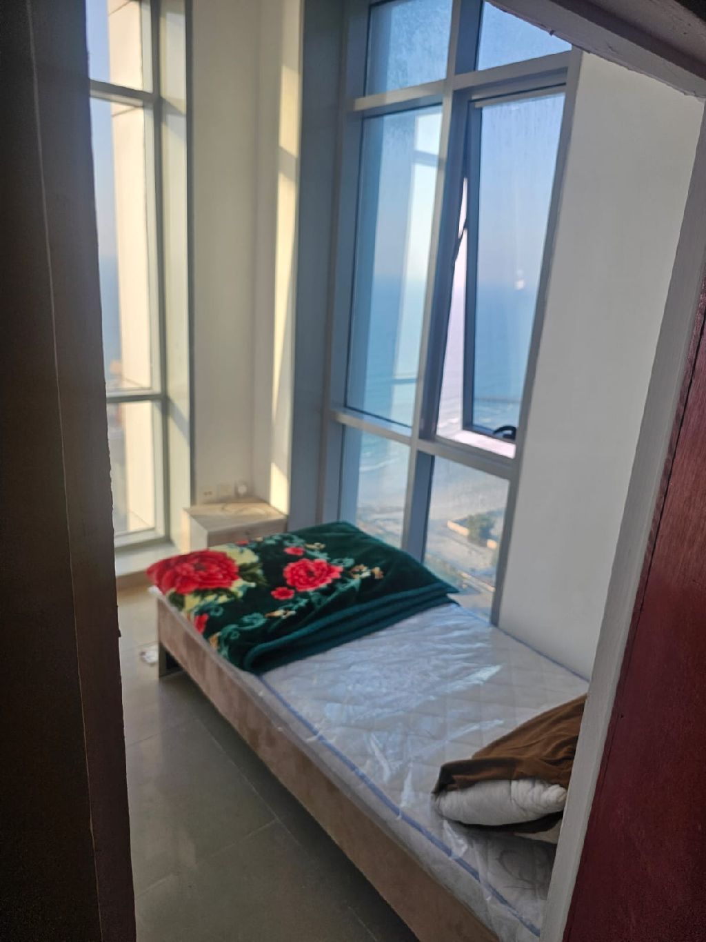 بارتشن بشباك لشاب بسكن شباب بكورنيش عجمان النخيل 2 صف أول من الكورنيش اطلالة بحرية مباشرة السعر 1300 درهم