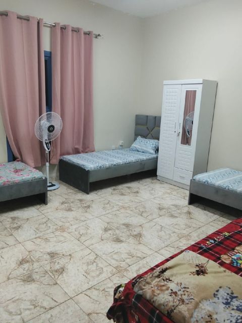 Available large room with 8 beds in Al Al Nuaimia. The room is very spacious and suitable for staff or workers. Located in a busy and accessible area close to public transportation and daily services. The accommodation is clean and well organized with good ventilation and natural light. Shared kitchen and bathrooms are maintained regularly. The place is safe and comfortable for long term stay and pr