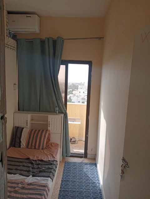Two partitions available for 900/ 800 in a ladies - only accommodation in Al Nakheel, second row from the Corniche. The apartment is for female employees, quiet, and clean