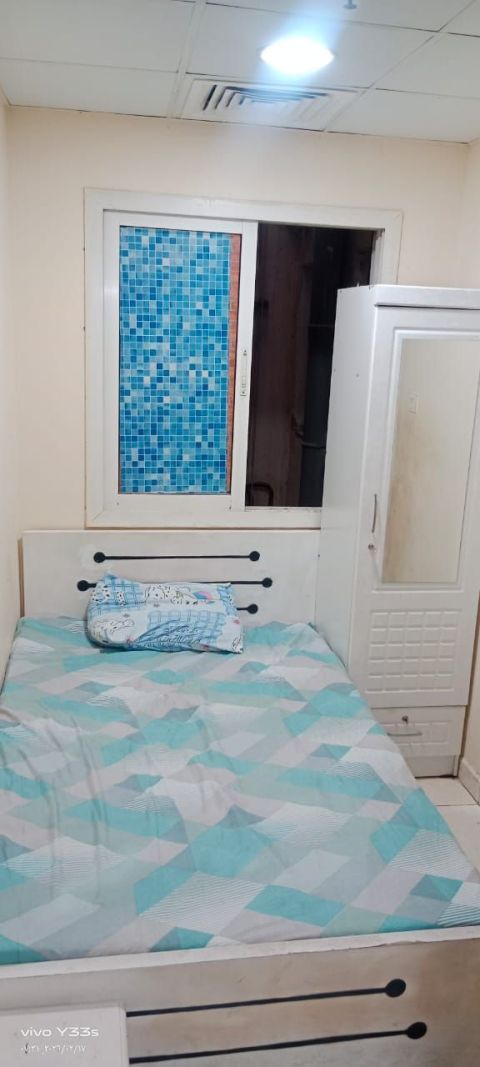 Available maid’s room with a private attached bathroom and window in a men’ accommodation for AED1100. Located behind Ajman One Towers, and close to Al Jundi Restaurant in Rashidiya 3. Quiet and clean staff housing