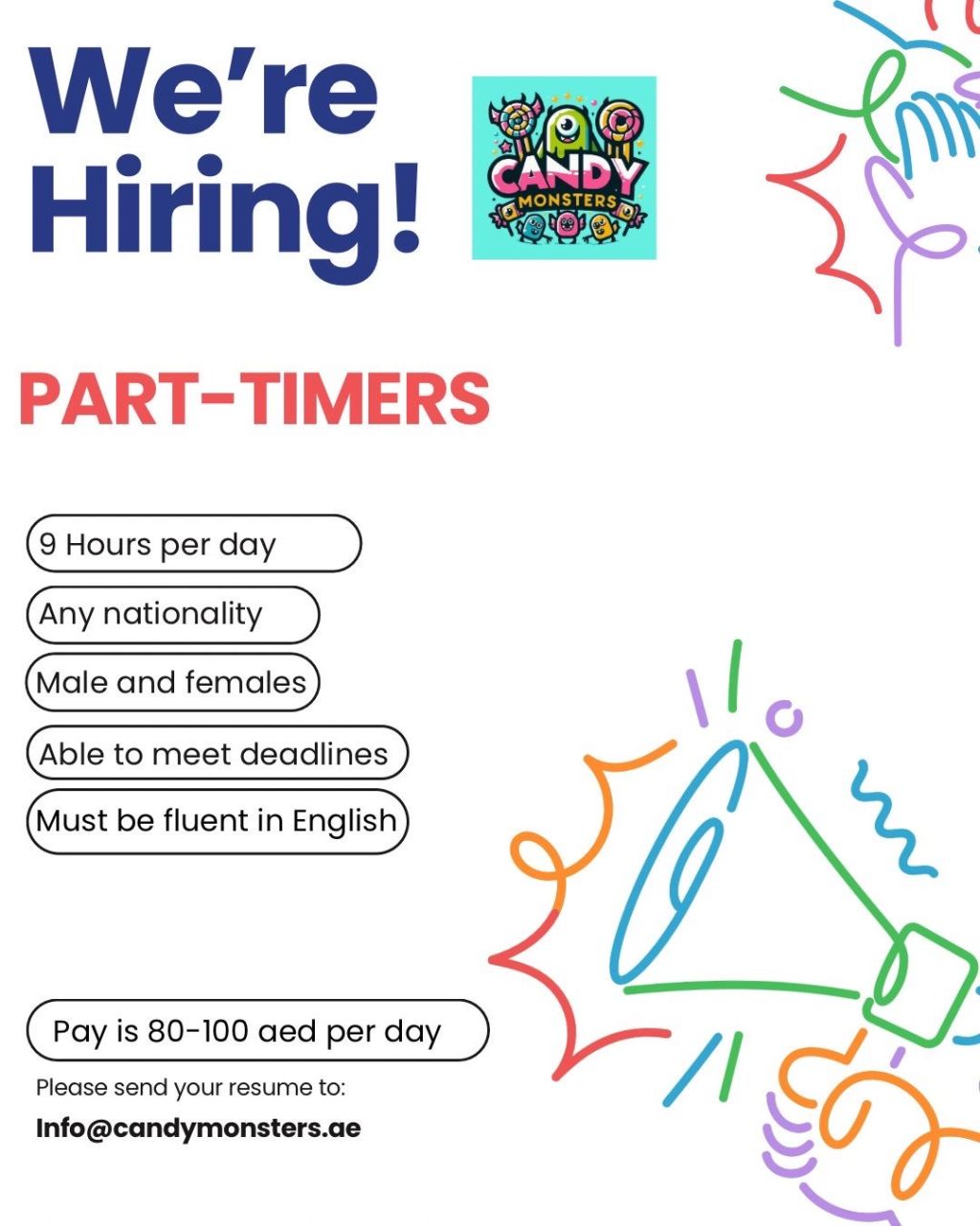 We are looking for two part time staff to assist with kitchen helping. Location Ajman, Al Jerf 2 Working Hours 8 hours per day Pay AED80 per day Requirement Must speak fluent English If you or someone you know is interested, please reach out