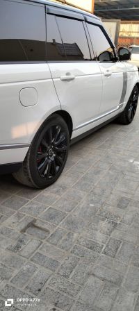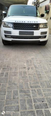 Range Rover 2015 model, white exterior, beige interior, top Supercharged trim, panoramic sunroof, excellent condition, 8 cylinders.