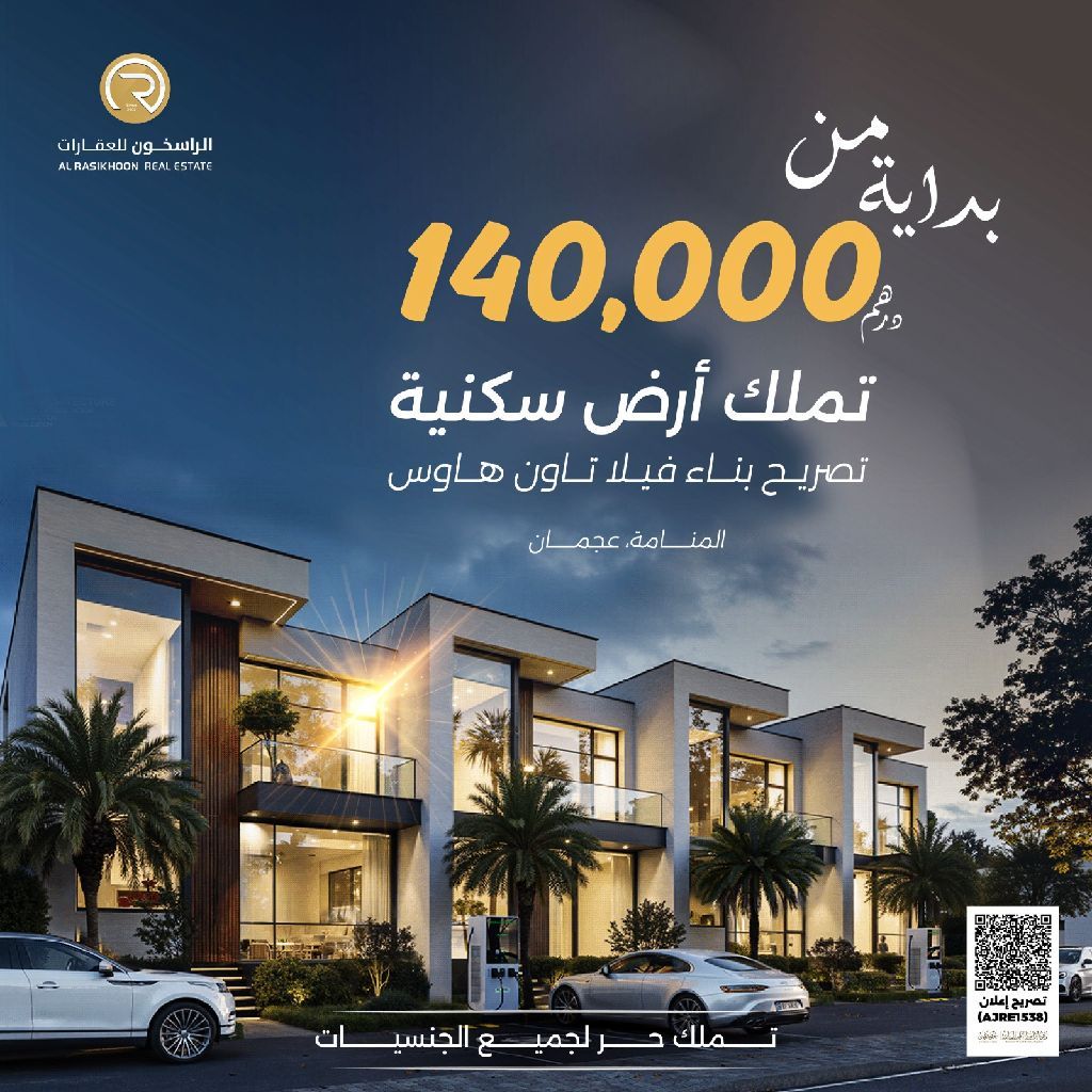 أراضي سكنية في منطقة المنامة عجمان بأسعار تبدأ من 140000 لا عمولة رسوم التسجيل مجانا