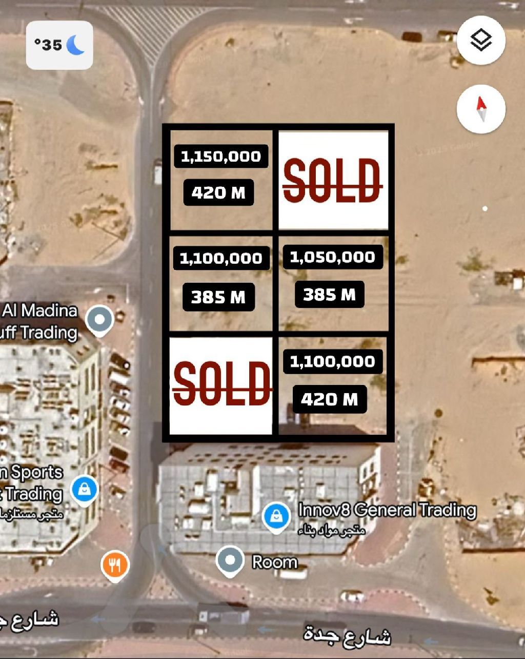 للبيع 4 قطع أراضي سكني تجاري في الجرف الصناعية 2 أرضي 4 ثاني قطعة من شارع جدة مساحة 385 متر - مساحة 420 متر