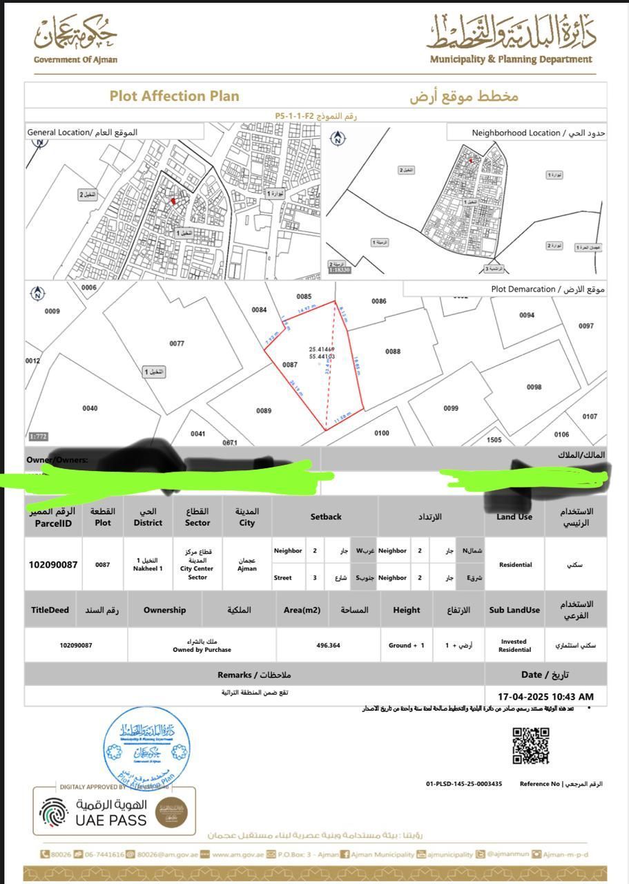 للبيع أرض من المالك مباشر النخيل 1 مساحة 6000 قدم ترخيص سكاني استثماري G 1 السعر المطلوب 1250000