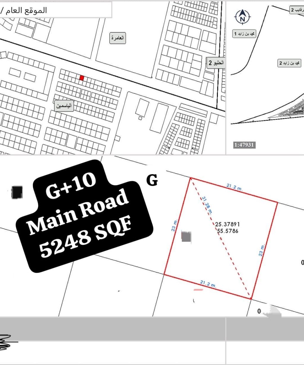 للبيع أرض مميزة أرض ذهبية في الياسمين، عجمان على الشارع الرئيسي في قرية الأميرة، تصريح تجاري + سكني (أرضي + 10) مساحة 5248 قدم مربع، السعر 3800000