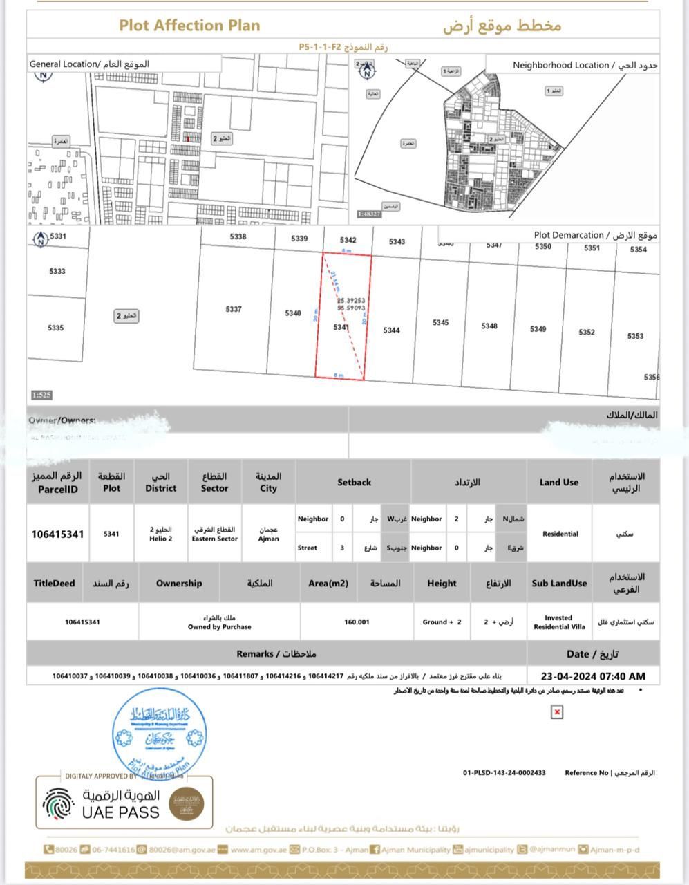 أراضي للبيع في عجمان مخطط المروج قطعة أرض تاون هاوس G 2 مساحة 160م - 1722 قدم للتواصل