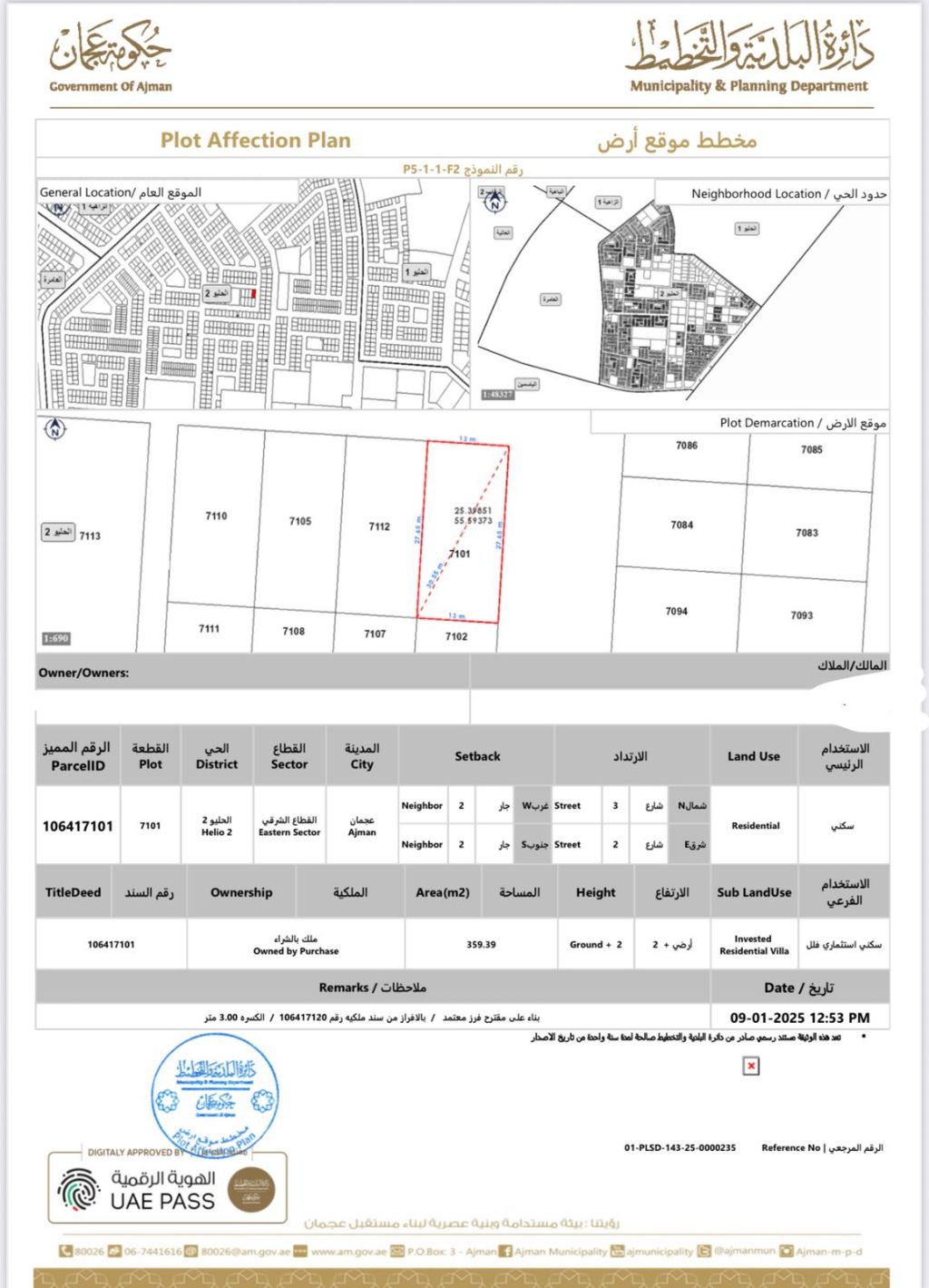 للبيع - قطعة أرض سكنية في عجمان الحليو 2 موقع مميز في منطقة هادئة وقريبة من الخدمات تملك حر بدون رسوم تسجيل المساحة 360 متر مربع (3875 قدم مربع) السعر النهائي 835000 درهم فرصة ممتازة لبناء منزل الأحلام أو للاستثمار في واحدة من أكثر المناطق نموا في عجمان. موقع الأرض على الخريطة