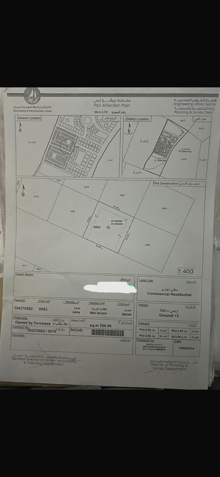 للبيع في العالية في عجمان حميد سيتي قطعة أرض سكني تجاري G 3 مساحة 256م - 2755 قدم للتواصل