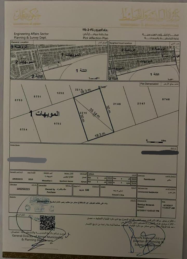 أرض سكني تجاري للبيع في المويهات 1 عجمان خلف نستو التلة أرضي + 2 محلات تجاريه + الرووف ممكن يسوي بنتاهاوس المساحة 549 متر/ 5909 قدم السعر 2 مليون و200 ألف