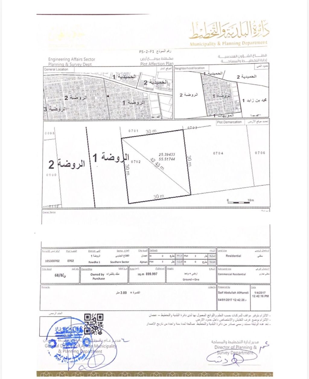 الروضة 1 عجمان على شارع مكة مباشرة 9687 قدم - 900 متر زاوية شارعين قطعة أرض سكني تجاري أرضي وأول عليه مبنى قديم على جزء من الأرض عليه تقريبا 6 محلات إيجار قديم 12 ألف بالسنة يعني تقريبا 72 ألف الإيجار السنوي مطلوب 3 مليون