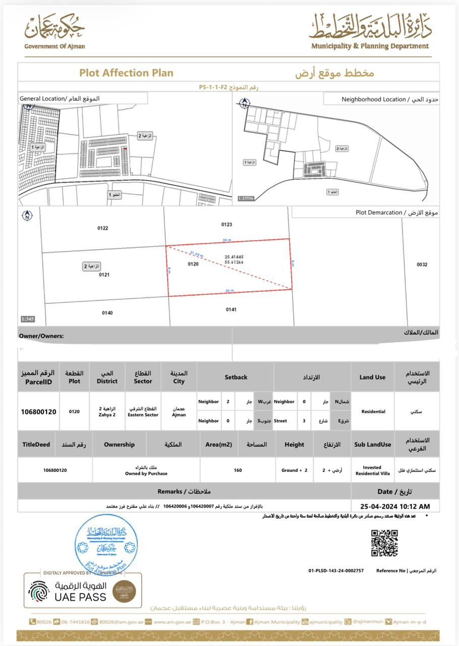 الزاهية عجمان قطعتين سكنيات تاون هاوس متجاورات مساحة القطعة 160م تصريح G 2 موقف كبير 8.5 متر أمام الأراضي مطلوب للقطعة 445 ألف شامل جميع الرسوم الموقع