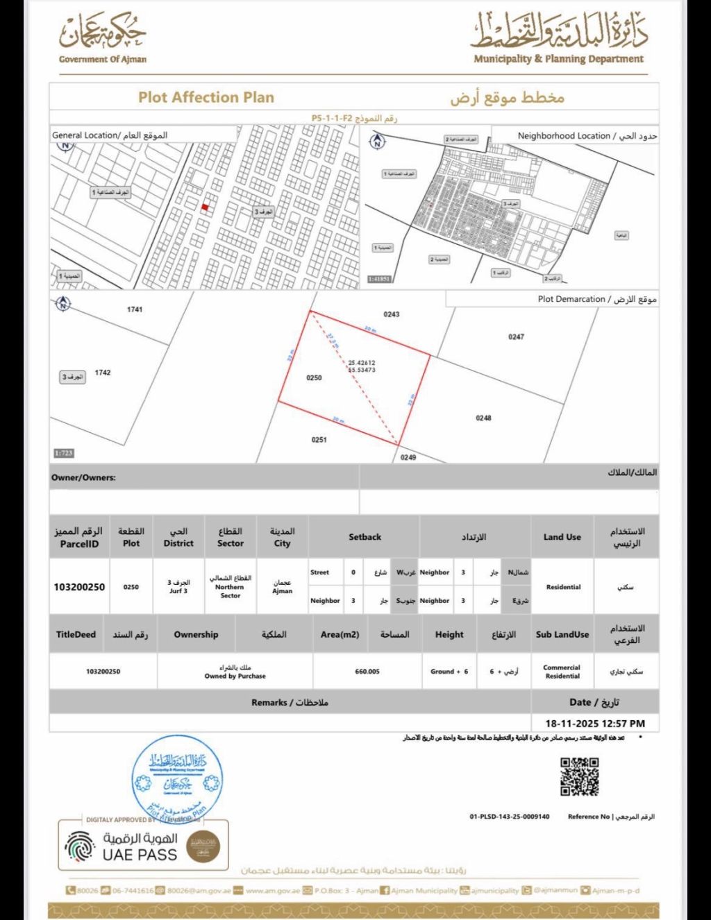 للبيع أرض في الجرف 3 سكني تجاري أرضي + 6 مساحة الأرض 660 متر السعر 2600000