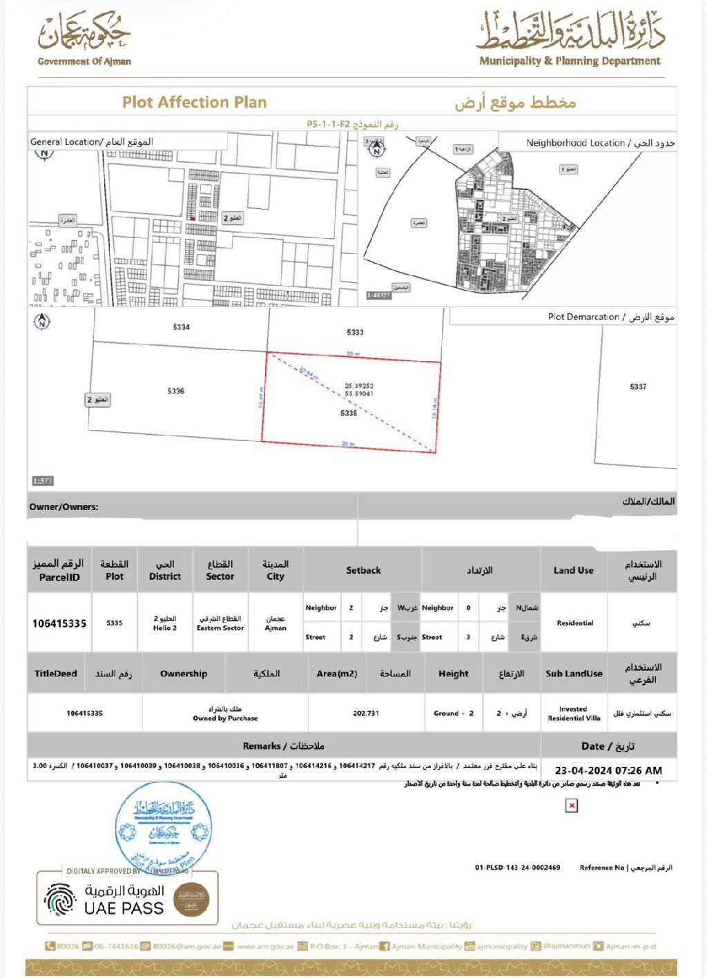 للبيع في الحليو 2 في عجمان قطعة أرض تاون هاوس زاوية شارعين قار تصريح أرضي وطابقين تملك حر مساحة 203 متر - 2185 قدم
