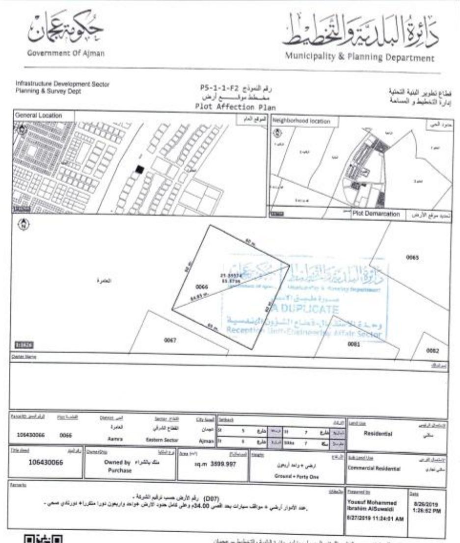 أرض سكني تجاري تصريح بيع شقق للبيع في - عجمان موقع الأرض / العامرة - مدينة الامارات مساحة الأرض / 38750 قدم مربع السعر 23M درهم اماراتي نهائي التصريح / أرضي + 41 تملك حر لجميع الجنسيات