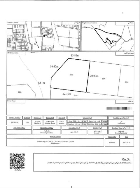 أرض تجاري للبيع في إمارة عجمان - المنامة - حوض 8 الأرض علي مساحة 407 متر - 4380 قدم تصريح البناء سكني تجاري أرضي وطابقين - البيع بسعر 320000 مع فرصه التملك الحر لجميع الجنسيات - بادر بالاتصال واغتنم الفرصه. لدينا المزيد من عروض المنامة المميزة