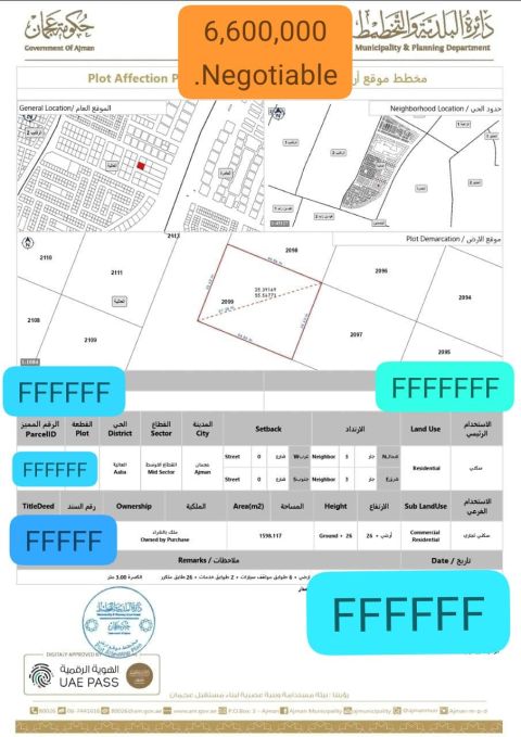 اعلان بيع أرض كورنر سكني تجاري العالية عجمان المساحة 1599 متر 17103 قدم مربع الارتفاع المسموح أرضي + 26 طابق ( G 26) السعر 6600.00 درهم للتواصل
