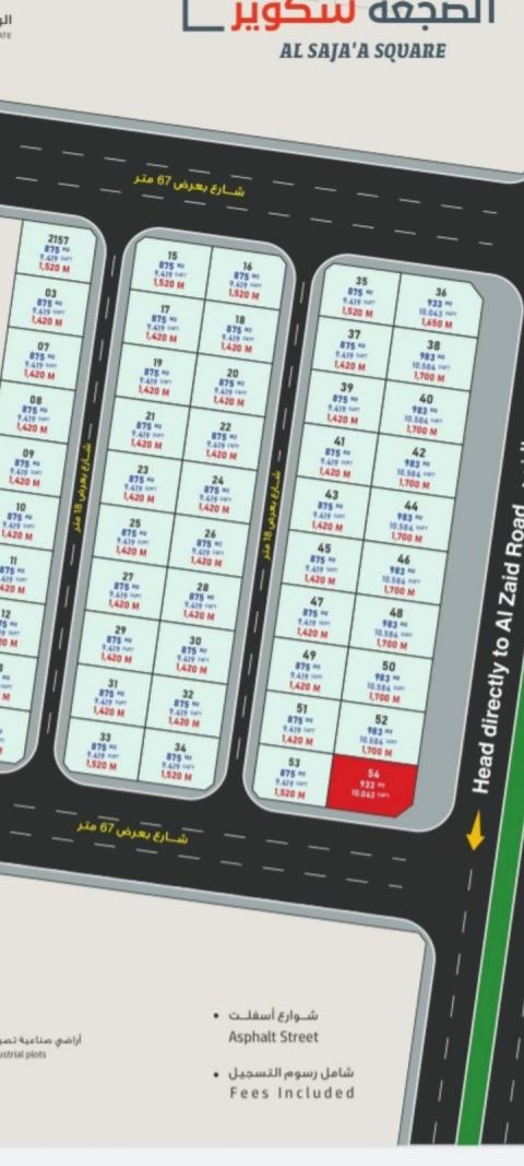 للبيع في منطقة الزاهية 9 قطع شامل رسوم التسجيل والتمليك شوارع اسفلت بالكامل الأرض جاهزه للبناء فورا مساحة الأرض 280 متر 3014 قدم سعر القطعة 710 ألف for sale in Al Zahia area 9 plots including registration and ownership fees Fully paved streets Land re