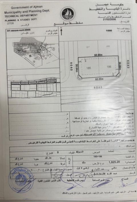 للبيع أرض في المنامة - عجمان حوض 14 أرض سكنية (رقم القطعة 729) تصريح أرضي + 1 مساحة 474 متر 5102 قدم تملك حر لجميع الجنسيات مطلوب 230 ألف درهم