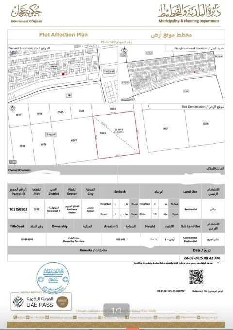 فرصة استثمارية مميزة في عجمان - مقابل مجمع أزهى قطعة أرض بمساحة 280 متر (3014 قدم) مع تصريح بناء أرضي + طابقين ( G 2) موقع استراتيجي قريب من جميع الخدمات والطرق الرئيسية، مثالية لبناء فيلا فاخرة أو مشروع سكني مربح مع عائد أيجاري مضمون. السعر 850000 درهم