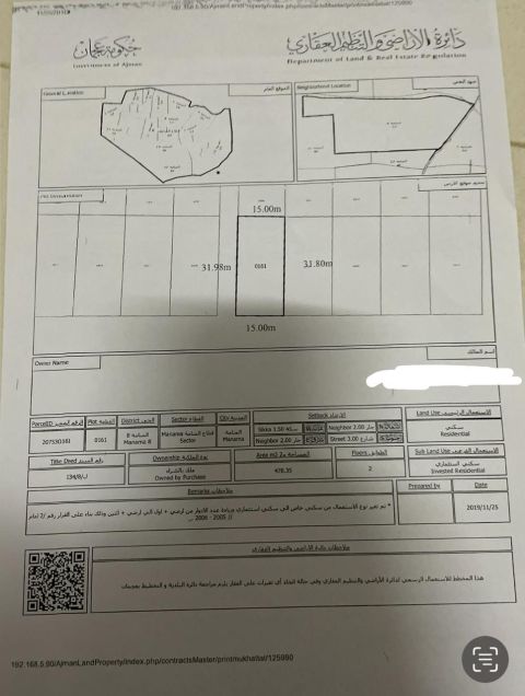 أرض تاون هاوس للبيع - الزاهية، عجمان موقع مميز شارع وسكة المساحة 190م (2000 قدم) التفاصيل تصريح بناء تاون هاوس أرضي + طابقين عليها دبل إعفاء السعر شامل جميع الرسوم السعر المطلوب 500000 درهم