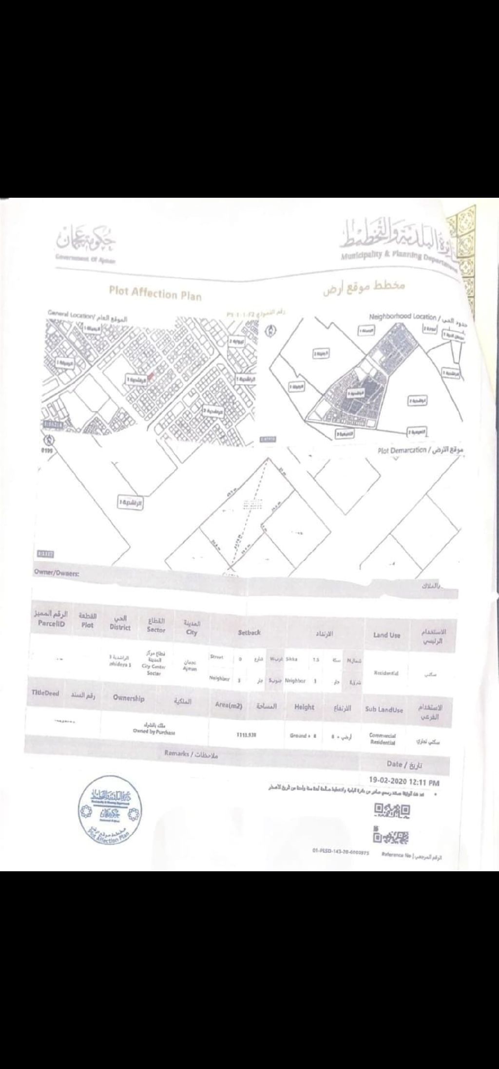 للبيع من المالك مباشرة أرض في الراشدية - عجمان سكني تجاري أرضي + 8 المساحة 1113م (11990 قدم) شارع وسكة - موقع ممتاز المطلوب 4000000 درهم (قابل للتفاوض) for sale - Direct from Owner Land in Rashidiya Ajman Residential + Commercial G 8 Area 1113 SQM (11990 SqFt. On road & alley - Prime location Price AED4000000 (Ne