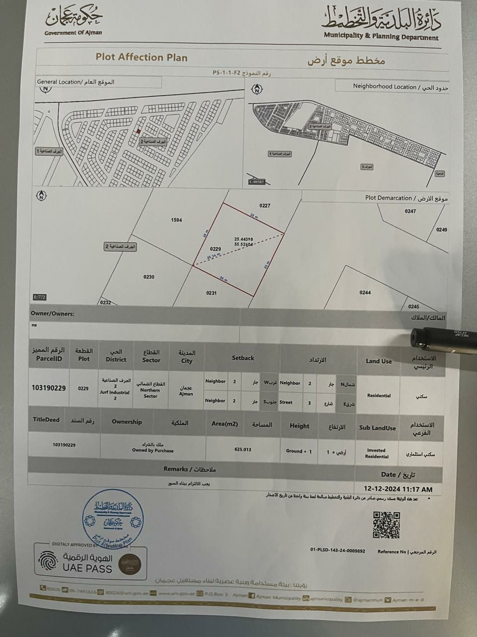 Land for sale, residential, investment, Al Jarf Industrial, land area 7500 feet, for urgent sale