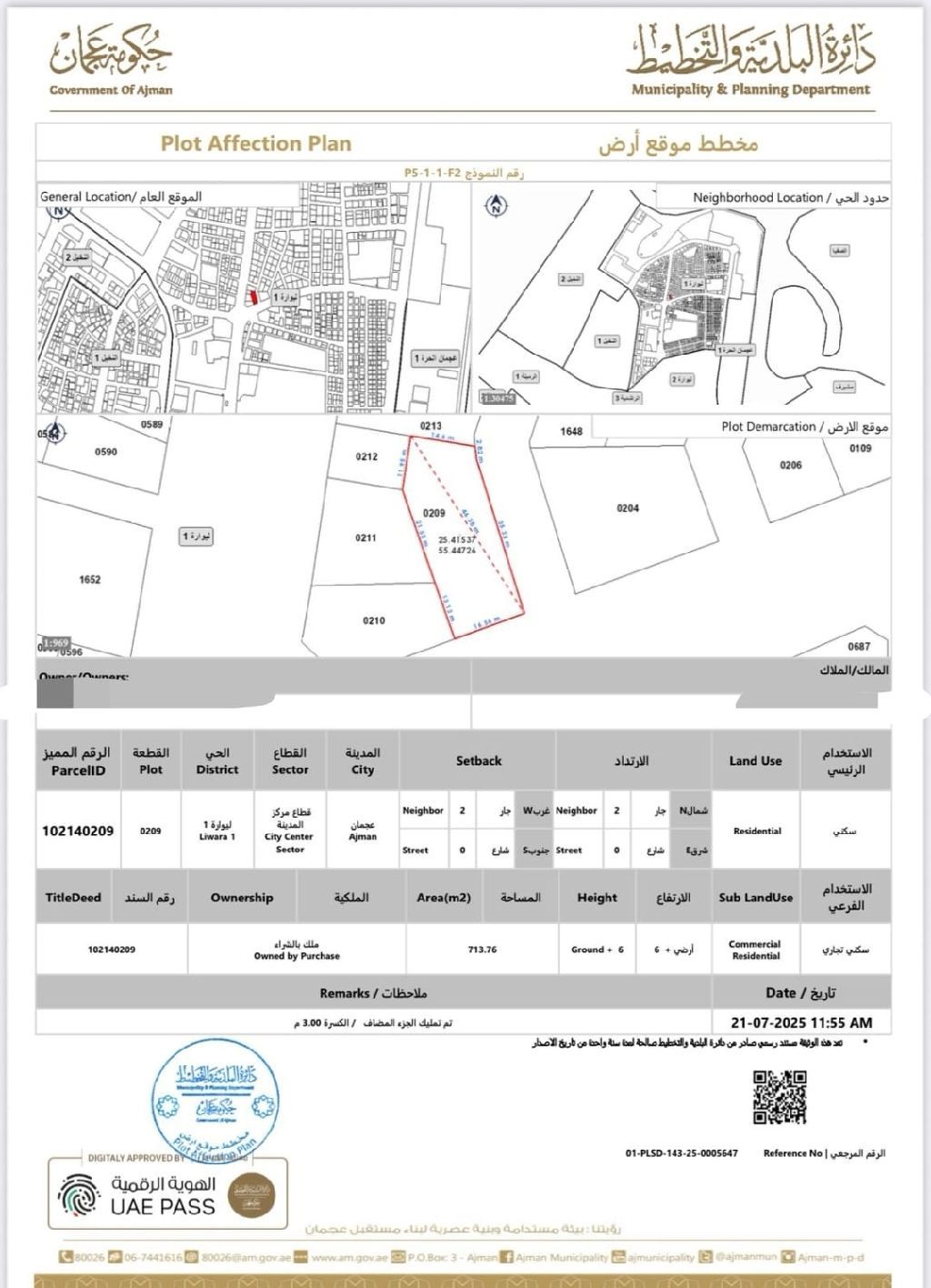 للبيع أرض في البستان سكني تجاري أرضي + 6 مساحة 713 متر 7675 قدم زاوية شارعين موقع ممتاز مطلوب مليون 850 ألف نهائي