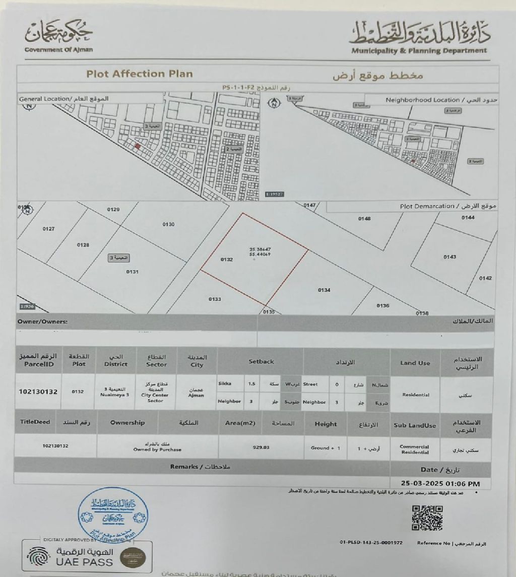 للبيع من المالك مباشرة - أرض في النعيمية 3، عجمان سكني تجاري تصريح أرضي + 1 طابق المساحة 929م (9500 قدم) موقع ممتاز قريب من الخدمات السعر المطلوب 2500000 درهم for sale - Direct from Owner Land in Al Al Nuaimia 3، Ajman Residential & Commercial Permission Ground + 1 Floor Plot Area 929 SQM (9500 SqFt) Prime Location, Close