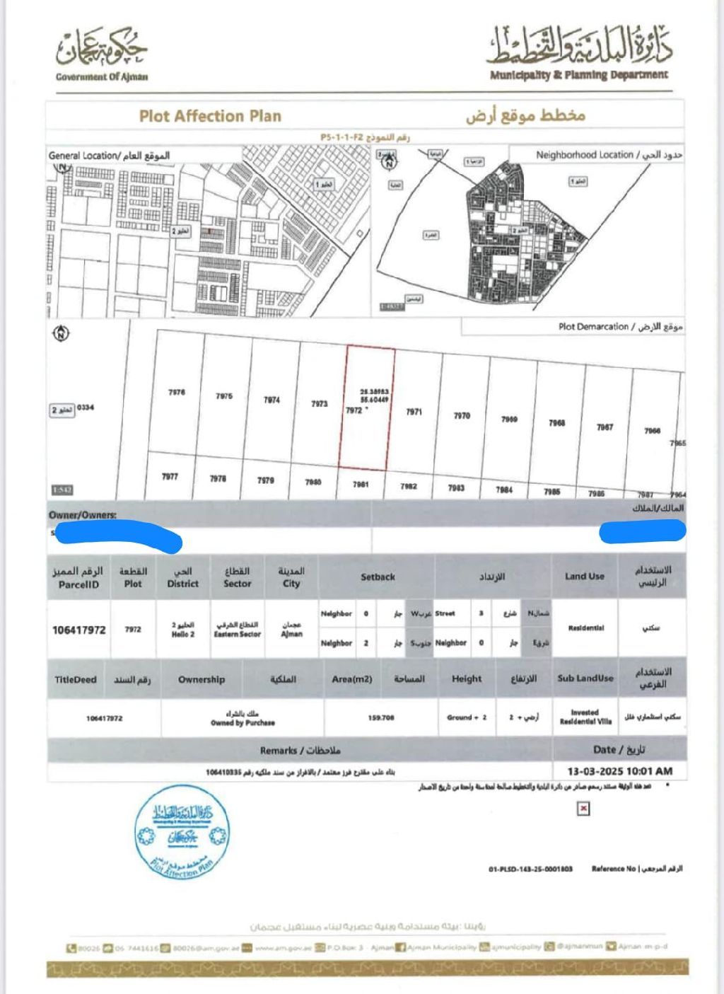 Townhouse land for sale, Al Helio 2 Area 160 meters Excellent location The price is 420 thousand, including registration fees