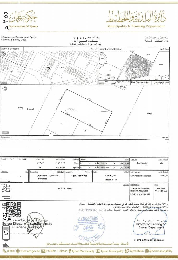 Land for sale in Al Jerf 2 On 3 streets Residential/ Commercial Permit G 10 Area 16870 SqFt Prime location next to Radisson Blu Hotel and D2D Price AED11000000 (including fees) Etwal real estate LLC is a leading real estate company in Ajman, combining experience and vision to provide integrated real estate solutions that meet the aspirations of clients and investors. We offer buying, selling