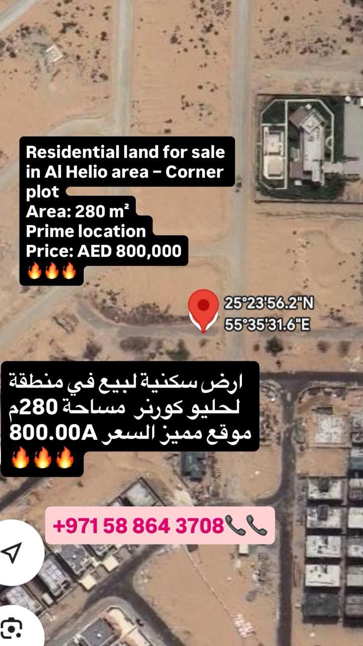 For sale - Corner Plot in Al Helio, Ajman Area 280 SQM Price AED800000 only Prime Location - Corner plot Close to main roads, schools, and all services