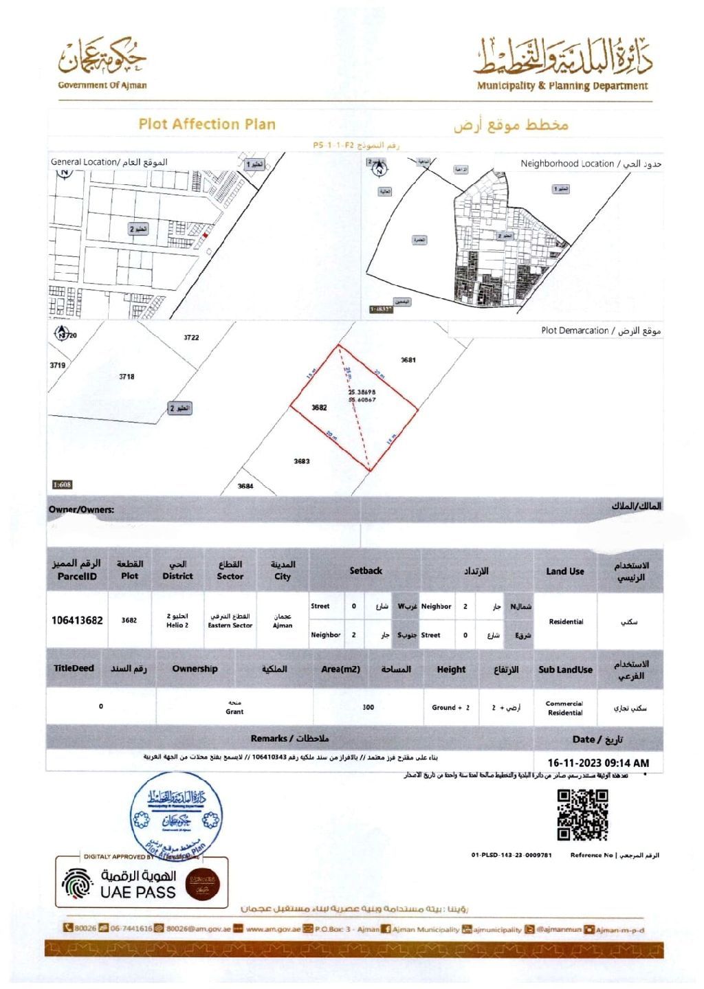 للبيع في الحليو 2 في عجمان شارع الزبير قطعتين أراضي سكني تجاري متجاورات مساحة القطعة 300 متر تصريح G 2 شارع ظهر وبطن للتواصل